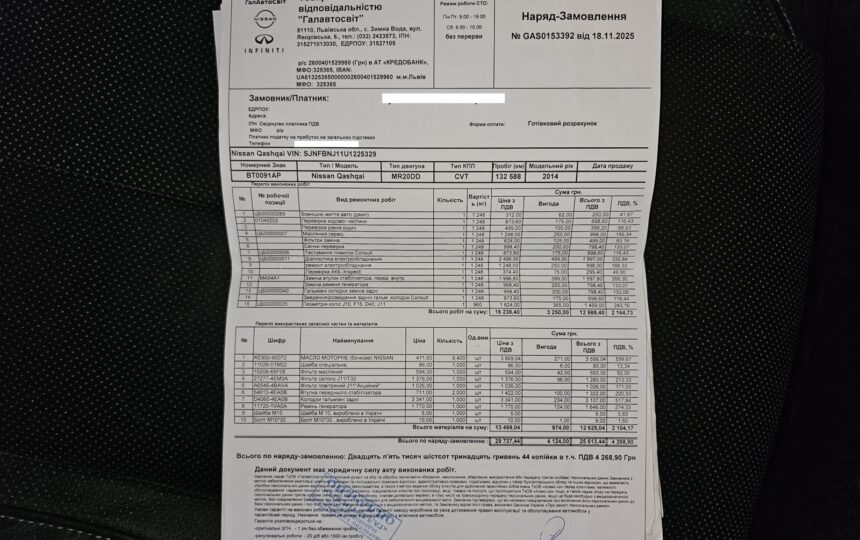 1 т.км тому пройдене ТО у офіційного дилера.