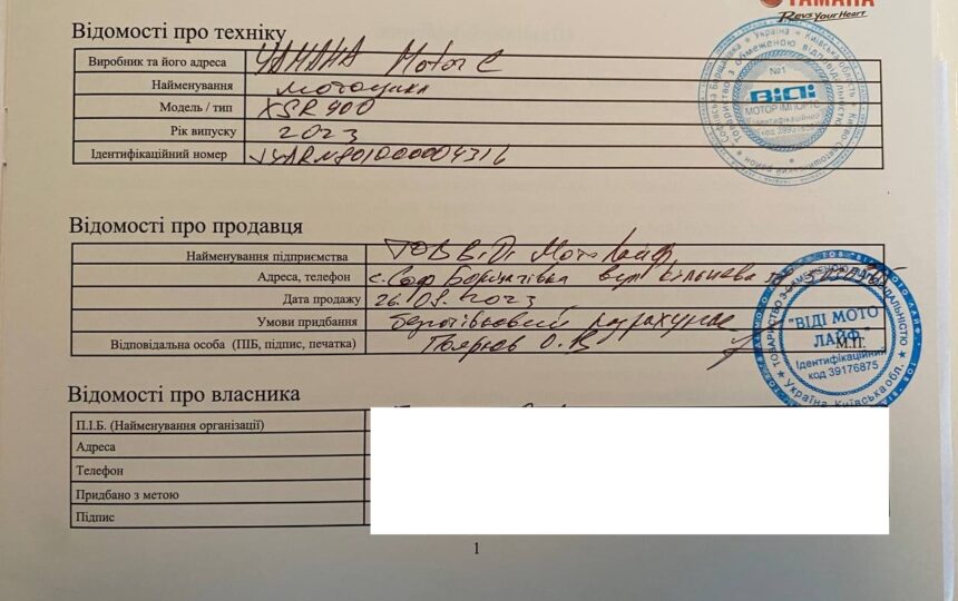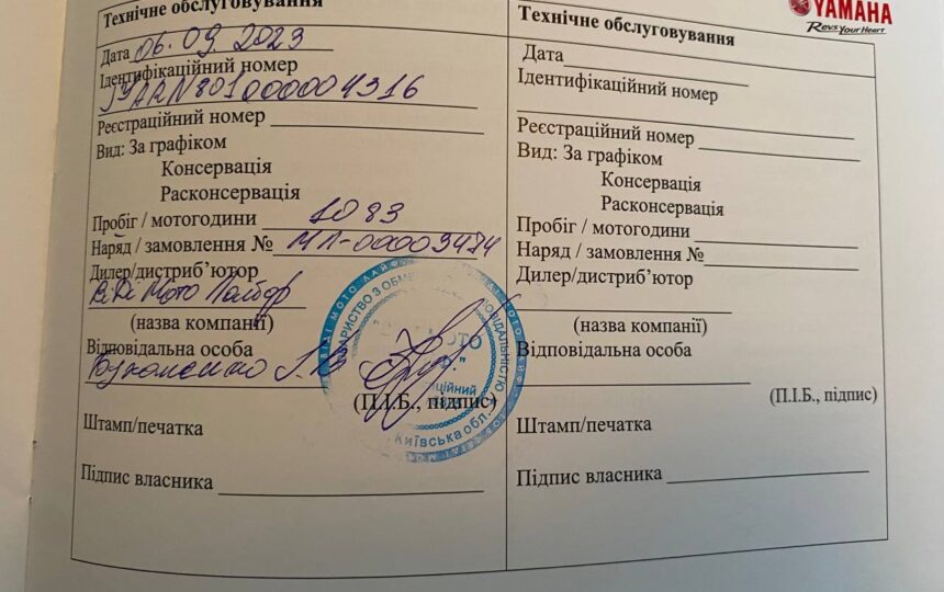 Куплений у офіційного дилера Ямаха на Окружній в Києві в серпні 2023, там проходив ТО, сервісну книгу додаю.