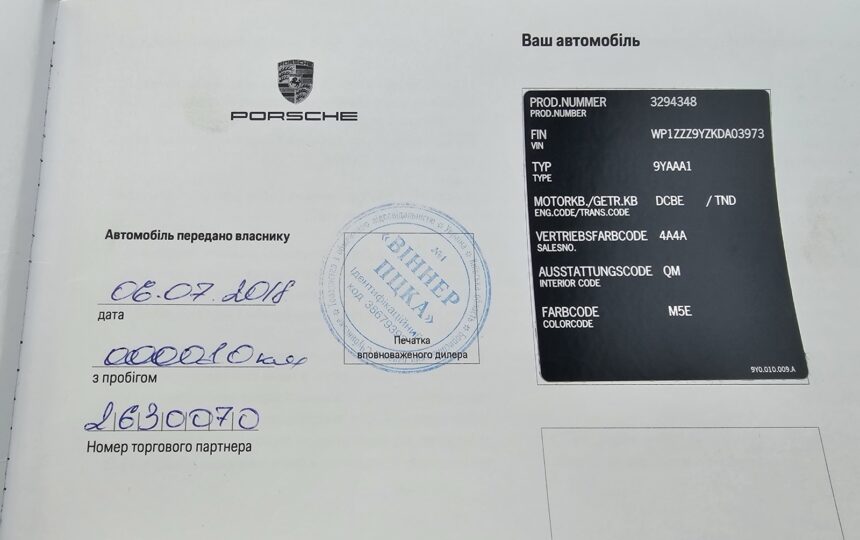 Панорама, LED-світло, дотяжки дверей, 21 диски, камери 360, Bose, електропривід багажнику, комфортні сидіння, пам`ять водія і пасажира, чорна стеля, тиснення лого Порше на підголівниках, Apple CarPlay & Android Auto, навігація, підігрів усіх сидінь, круїз.