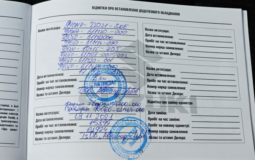 Є додаткові опції, які були встановлені у дилера при купівлі нового авто і внесені в сервісну книгу