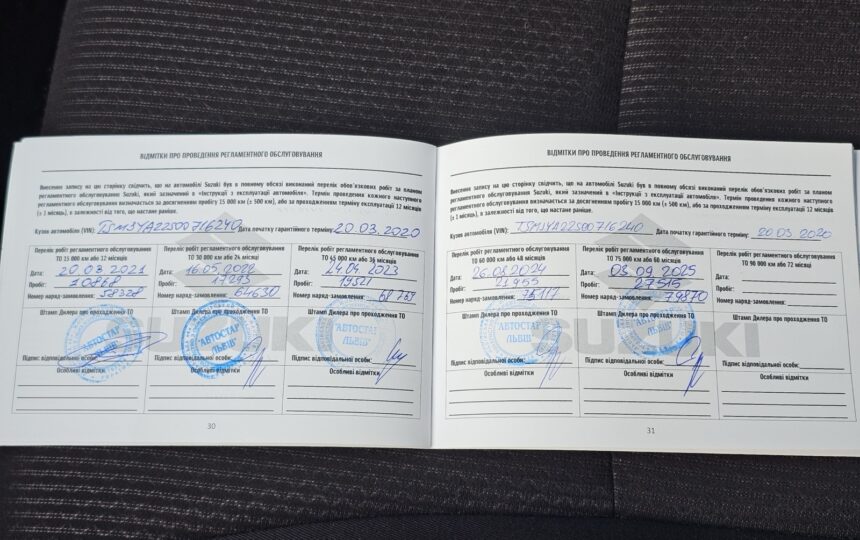 Усі ТО проходили у офіційного дилера з відмітками в сервісній книзі